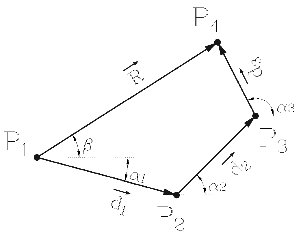 plecare P1 și vārful īn punctul de sosire P4. Acest